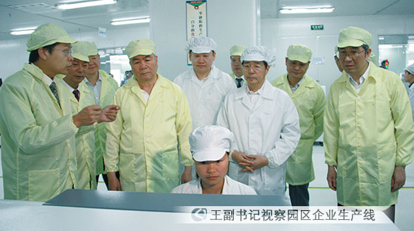 聶玉春副總經(jīng)理首先向王樂泉副書記轉(zhuǎn)達了熊群力董事長等集團領(lǐng)導(dǎo)的問候,歡迎王副書記蒞臨中電旗下企業(yè)視察指導(dǎo)。在園區(qū)展廳,聶總向各位領(lǐng)導(dǎo)和嘉賓介紹了中國電子集團為了響應(yīng)中央西部大開發(fā)的號召,落實胡錦濤總書記關(guān)于“廣西沿海發(fā)展應(yīng)形成新的一極”的重要指示精神,體現(xiàn)中央企業(yè)的政治責(zé)任與社會責(zé)任,與廣西壯族自治區(qū)人民政府合作建設(shè)中國電子北海產(chǎn)業(yè)園,充分發(fā)揮雙方的優(yōu)勢,抓住北部灣經(jīng)濟區(qū)開發(fā)、開放和東盟自由貿(mào)易區(qū)建立的機遇,打造西部沿海地區(qū)電子信息產(chǎn)業(yè)生產(chǎn)制造基地及信息、服務(wù)、貿(mào)易中心的戰(zhàn)略舉措,介紹了北海產(chǎn)業(yè)園的建設(shè)發(fā)展和產(chǎn)業(yè)集聚情況,并陪同參觀了相關(guān)企業(yè)的展品及景光電子生產(chǎn)車間。